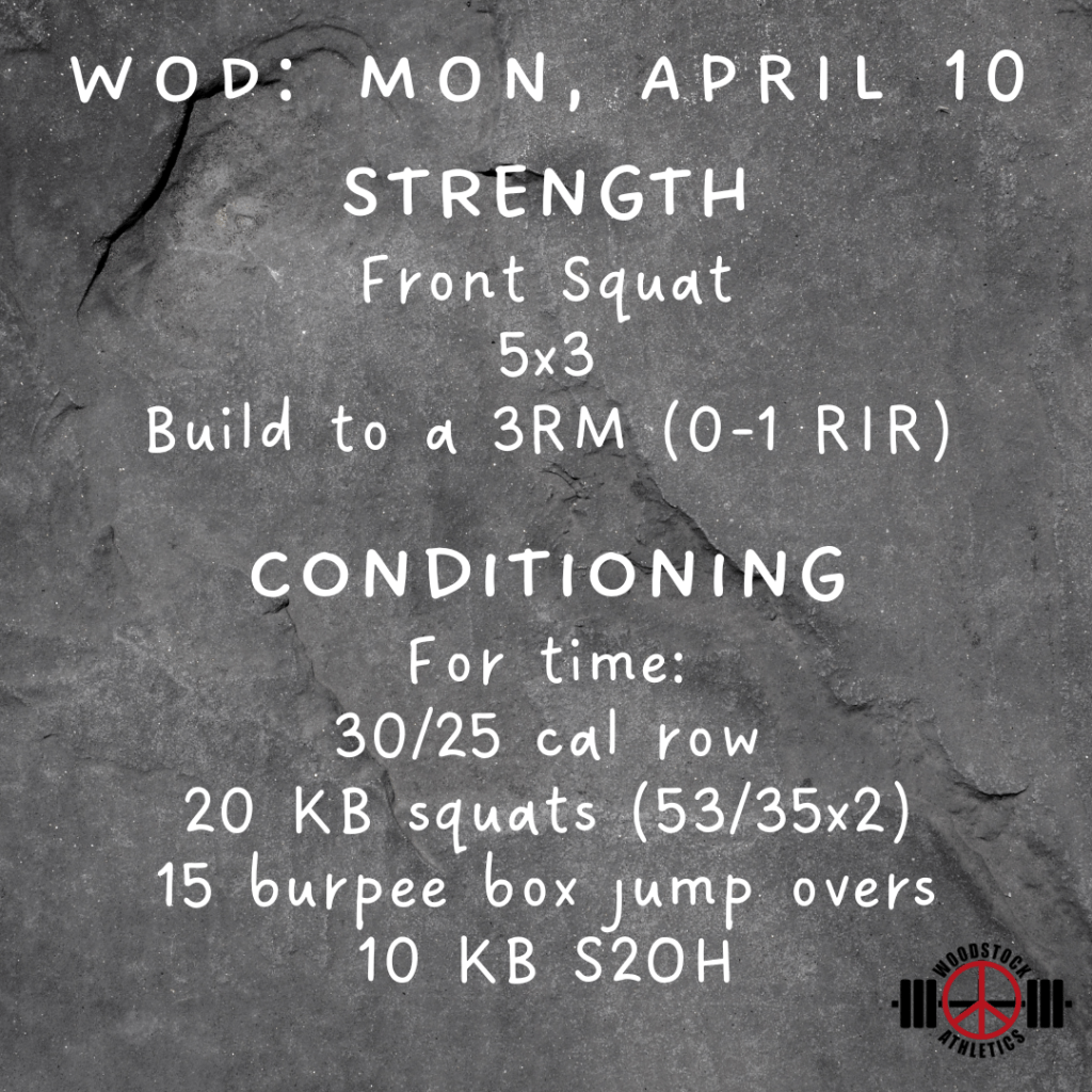 WOD & Barbell Club: Monday, April 10 Posted bySteph VermeychukApril 10, 2023April 9, 2023Posted inWorkout of the Day Share this: Click to share on X (Opens in new window) X Click to share on Facebook (Opens in new window) Facebook Like Loading... Related