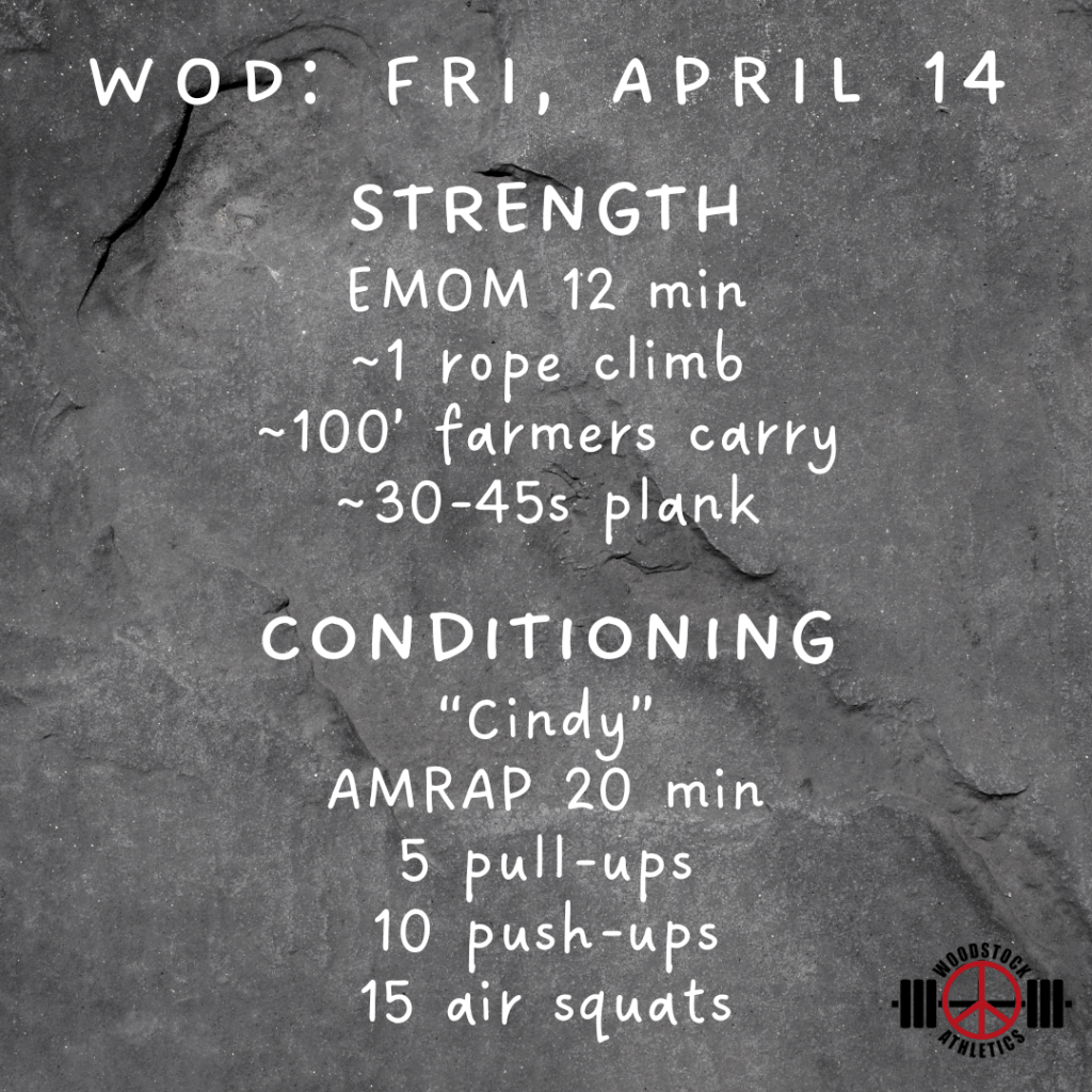 WOD: Friday, April 14 Posted bySteph VermeychukApril 14, 2023April 9, 2023Posted inWorkout of the Day Share this: Click to share on X (Opens in new window) X Click to share on Facebook (Opens in new window) Facebook Like Loading... Related