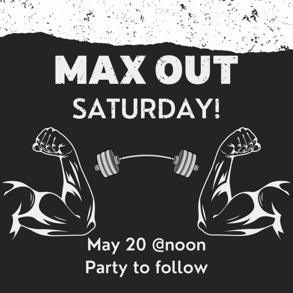 Come to the gym on Saturday, May 20 at noon to max out any lifts you want! 💪🏼