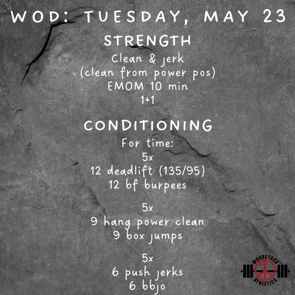 WOD: Tuesday, May 23 Posted bySteph VermeychukMay 23, 2023May 21, 2023Posted inWorkout of the Day Share this: Click to share on X (Opens in new window) X Click to share on Facebook (Opens in new window) Facebook Like Loading... Related