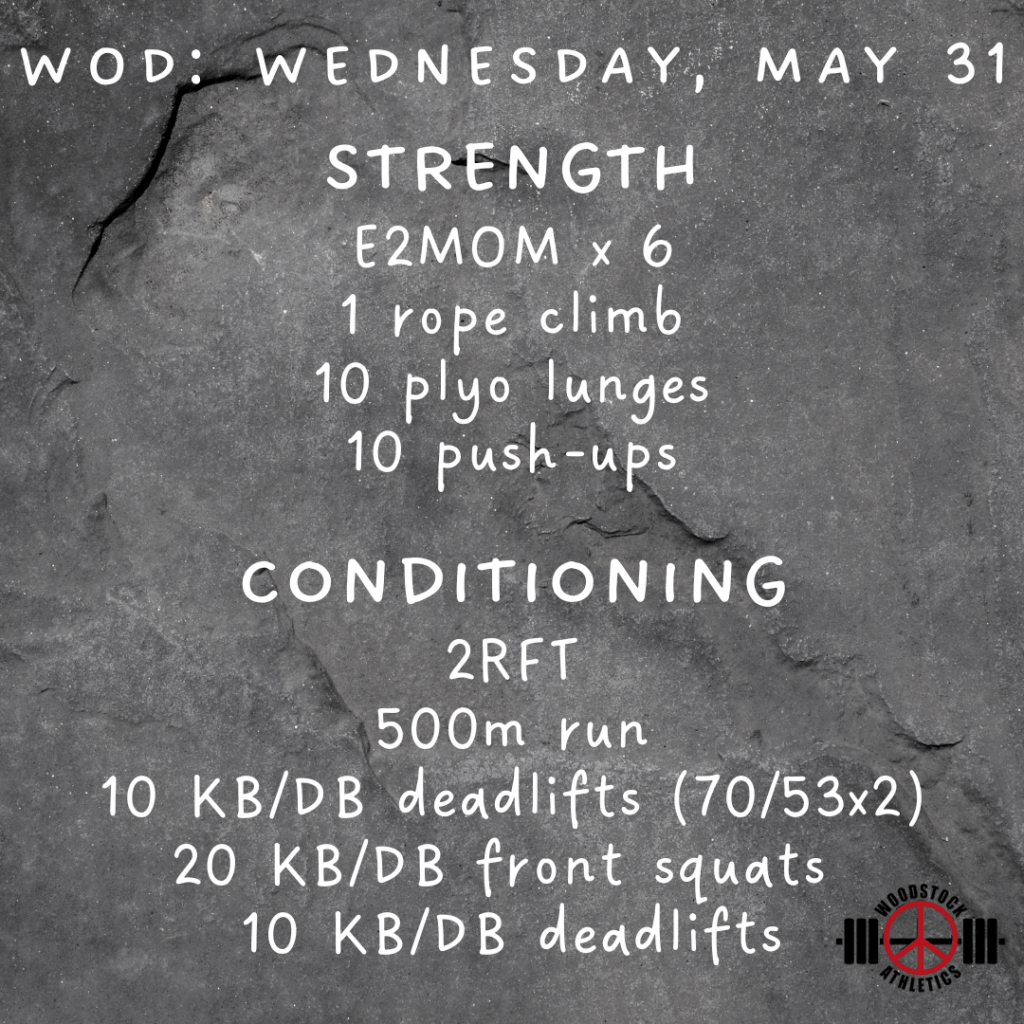 WOD: Wednesday, May 31 Posted bySteph VermeychukMay 31, 2023May 28, 2023Posted inWorkout of the Day Share this: Click to share on X (Opens in new window) X Click to share on Facebook (Opens in new window) Facebook Like Loading... Related