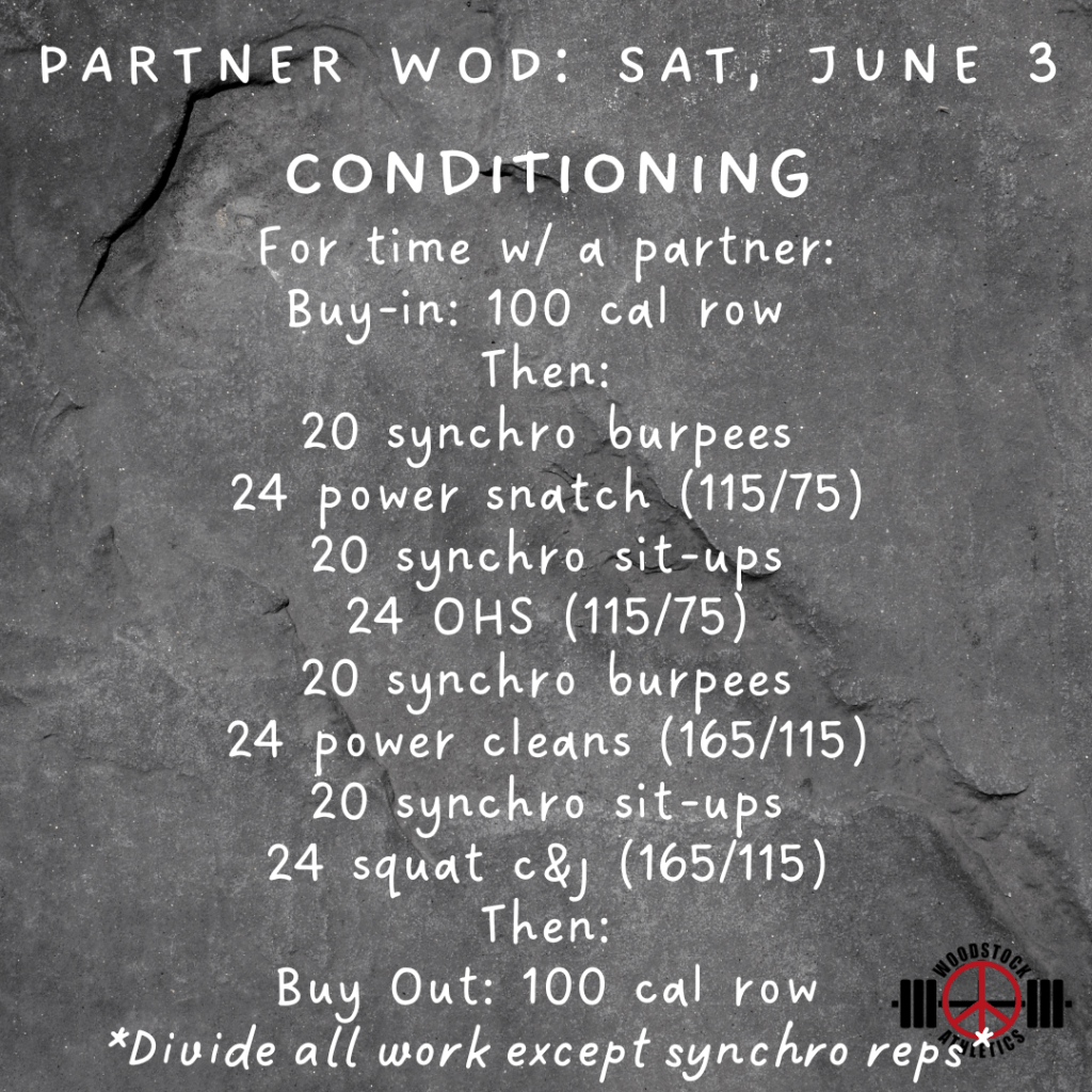Partner WOD: Saturday, June 3 Posted bySteph VermeychukJune 3, 2023May 28, 2023Posted inWorkout of the Day Share this: Click to share on X (Opens in new window) X Click to share on Facebook (Opens in new window) Facebook Like Loading... Related