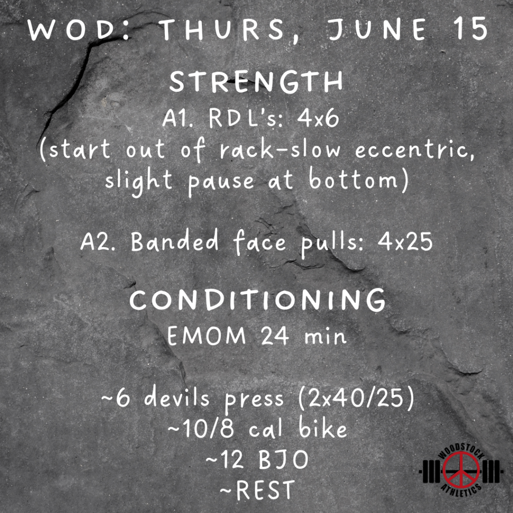 WOD & Barbell Club: Thursday, June 15 Posted bySteph VermeychukJune 15, 2023June 10, 2023Posted inWorkout of the Day Share this: Click to share on X (Opens in new window) X Click to share on Facebook (Opens in new window) Facebook Like Loading... Related