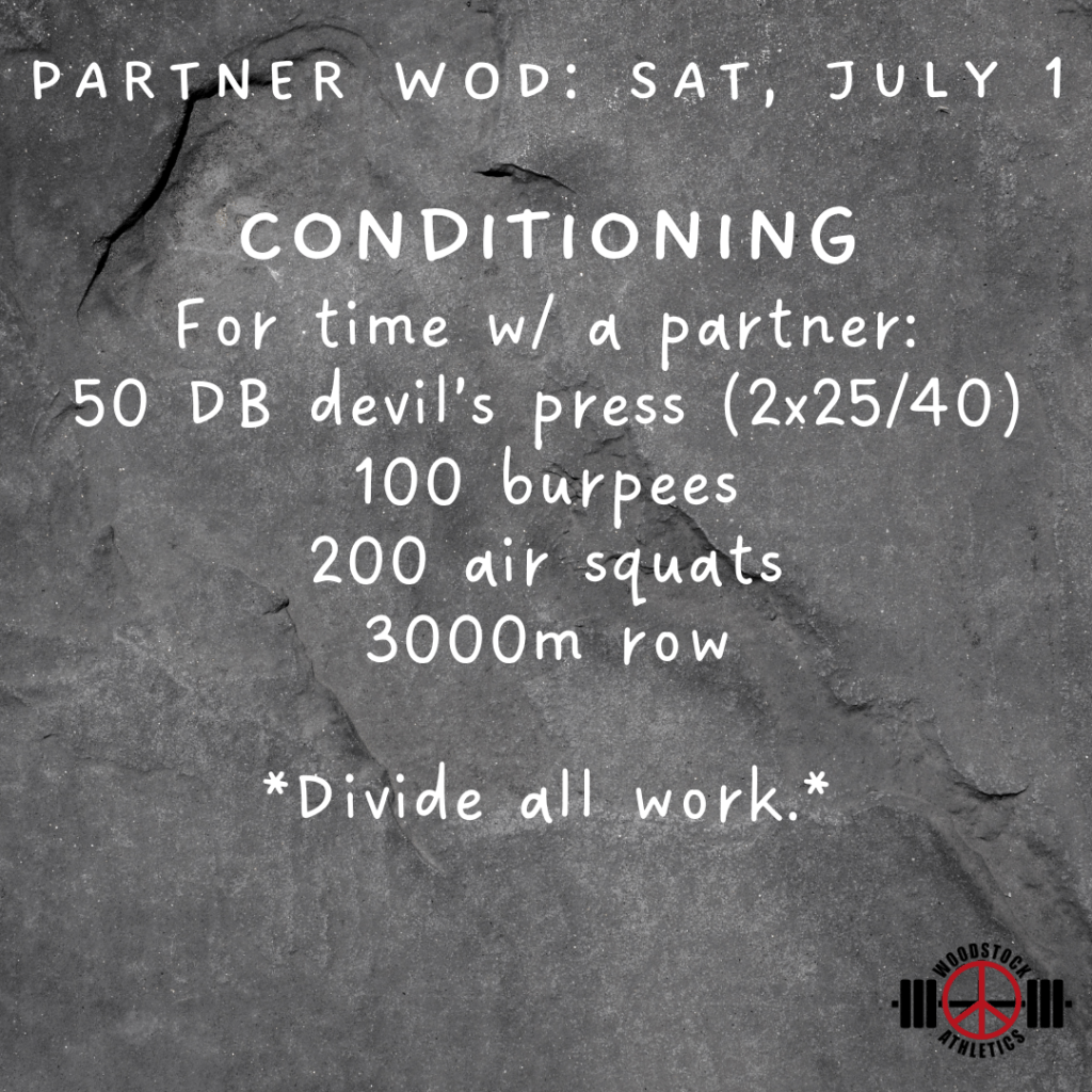 Partner WOD & Barbell Club: Saturday, July 1 Posted bySteph VermeychukJuly 1, 2023June 24, 2023Posted inWorkout of the Day Share this: Click to share on X (Opens in new window) X Click to share on Facebook (Opens in new window) Facebook Like Loading... Related