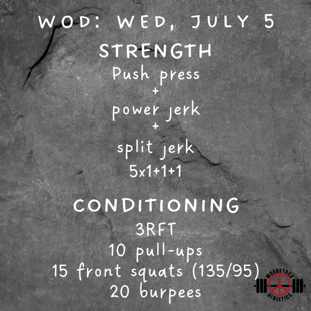 WOD: Wednesday, July 5 Posted bySteph VermeychukJuly 5, 2023July 2, 2023Posted inWorkout of the Day Share this: Click to share on X (Opens in new window) X Click to share on Facebook (Opens in new window) Facebook Like Loading... Related