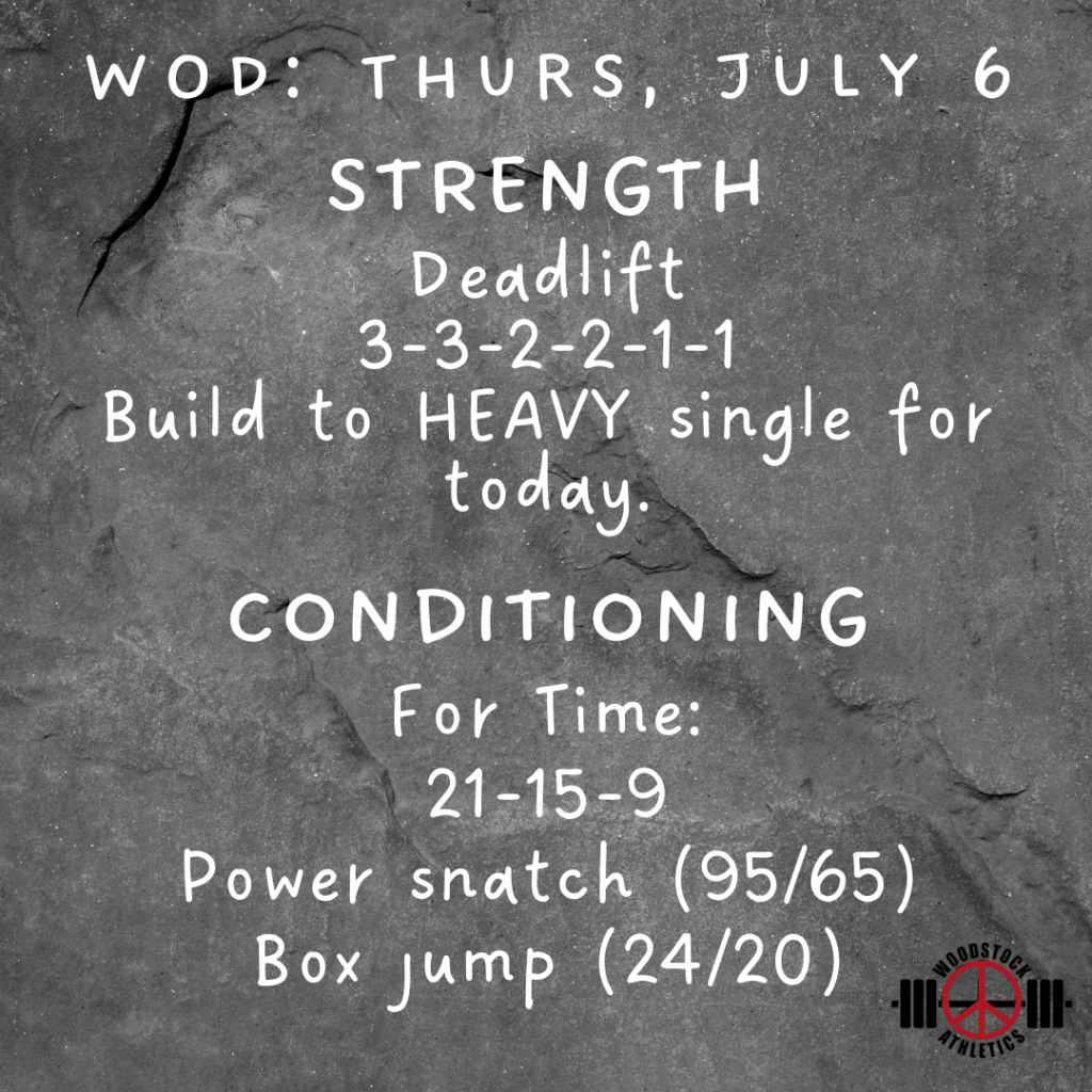 WOD & Barbell Club: Thursday, July 6 Posted bySteph VermeychukJuly 6, 2023July 2, 2023Posted inWorkout of the Day Share this: Click to share on X (Opens in new window) X Click to share on Facebook (Opens in new window) Facebook Like Loading... Related