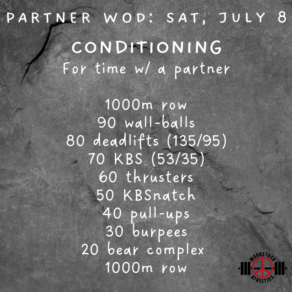 Partner WOD & Barbell Club: Saturday, July 8 Posted bySteph VermeychukJuly 8, 2023July 2, 2023Posted inWorkout of the Day Share this: Click to share on X (Opens in new window) X Click to share on Facebook (Opens in new window) Facebook Like Loading... Related