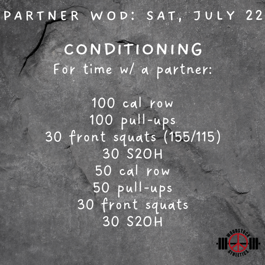 Partner WOD & Barbell Club: Saturday, July 22 Posted bySteph VermeychukJuly 22, 2023July 16, 2023Posted inWorkout of the Day Happy birthday to Hillary and Kristin!!! 🎉 Share this: Click to share on X (Opens in new window) X Click to share on Facebook (Opens in new window) Facebook Like Loading... Related