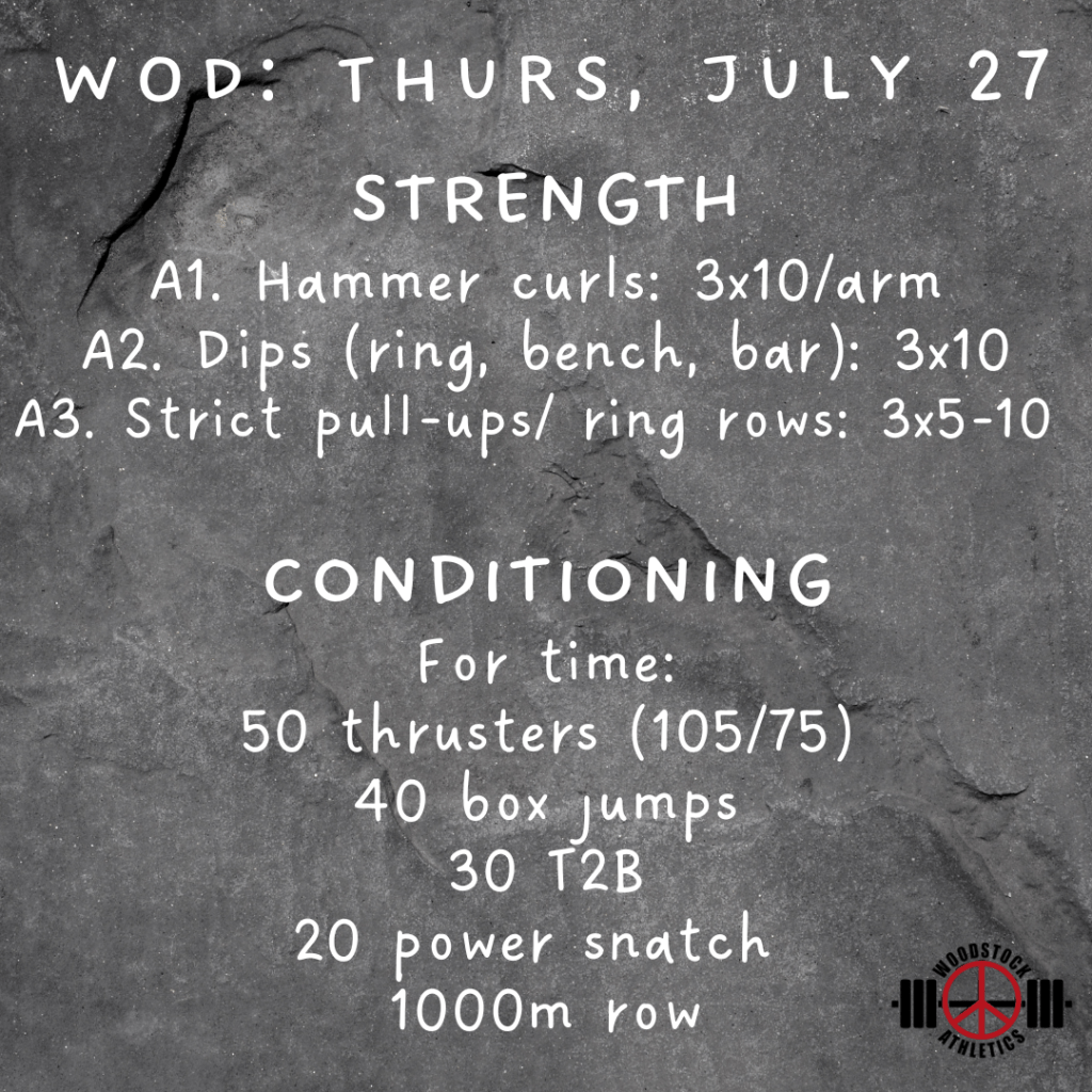WOD & Barbell Club: Thursday, July 27 Posted bySteph VermeychukJuly 27, 2023July 22, 2023Posted inWorkout of the Day Share this: Click to share on X (Opens in new window) X Click to share on Facebook (Opens in new window) Facebook Like Loading... Related