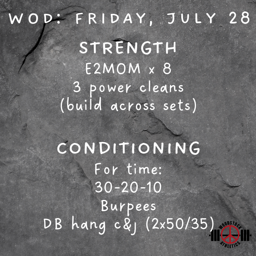 WOD: Friday, July 28 Posted bySteph VermeychukJuly 28, 2023July 22, 2023Posted inWorkout of the Day Share this: Click to share on X (Opens in new window) X Click to share on Facebook (Opens in new window) Facebook Like Loading... Related