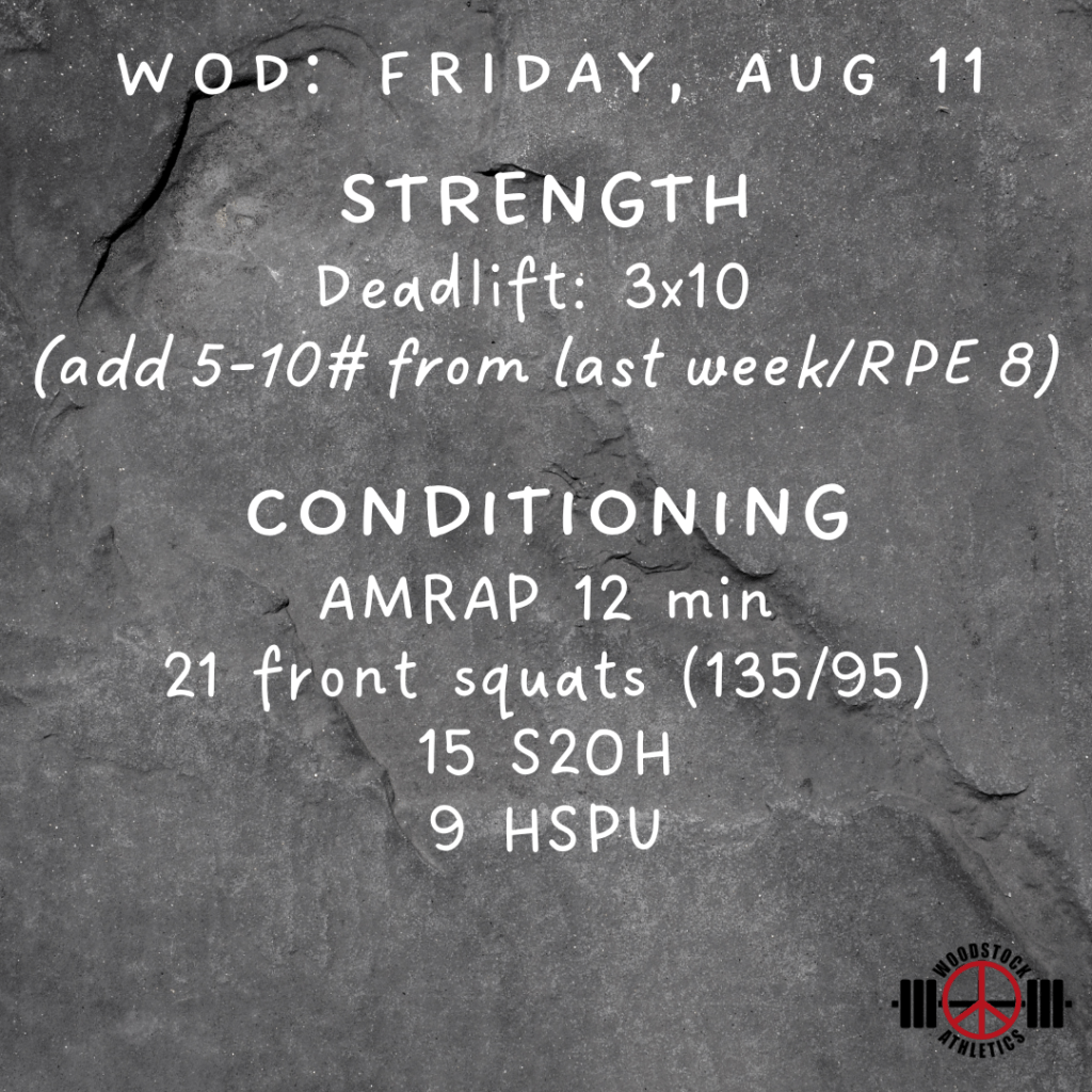 WOD: Friday, August 11 Posted bySteph VermeychukAugust 11, 2023August 6, 2023Posted inWorkout of the Day Share this: Click to share on X (Opens in new window) X Click to share on Facebook (Opens in new window) Facebook Like Loading... Related