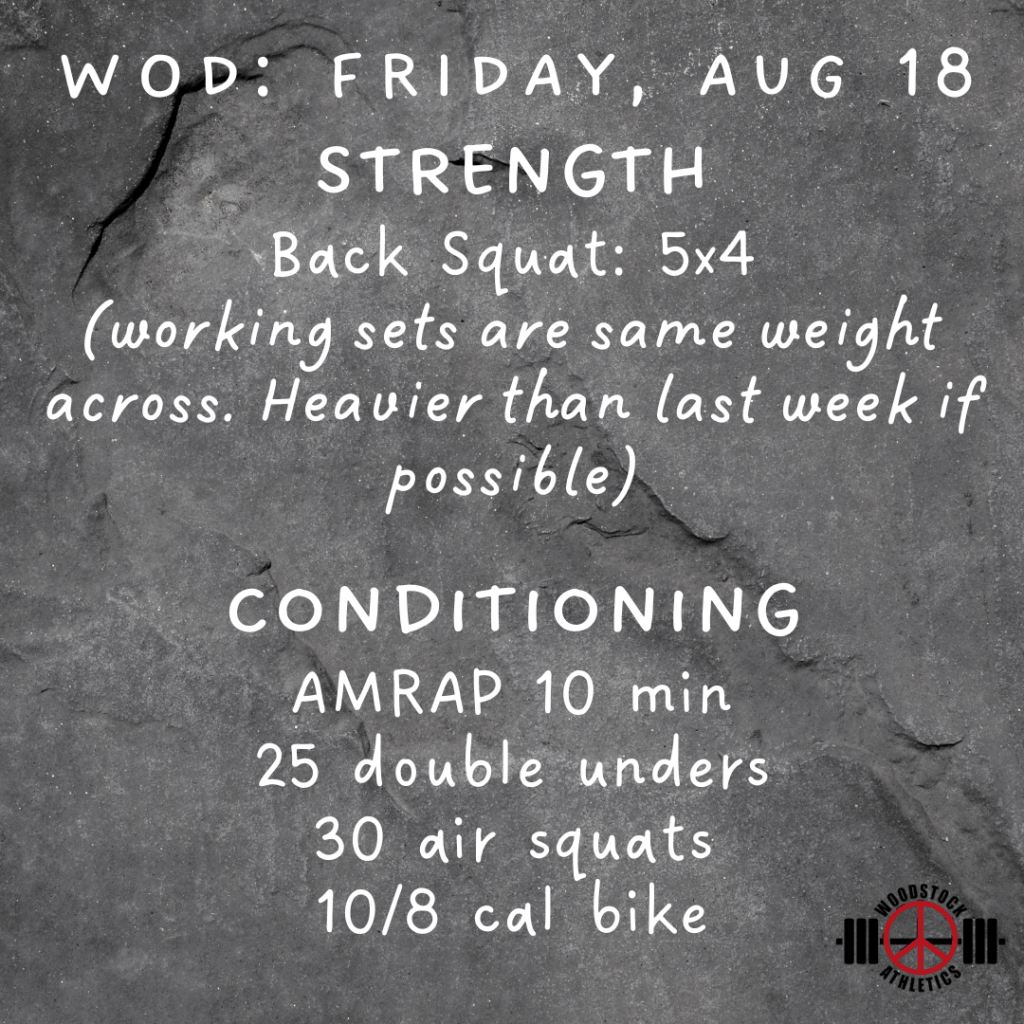 WOD: Friday, August 18 Posted bySteph VermeychukAugust 18, 2023August 13, 2023Posted inWorkout of the Day Share this: Click to share on X (Opens in new window) X Click to share on Facebook (Opens in new window) Facebook Like Loading... Related