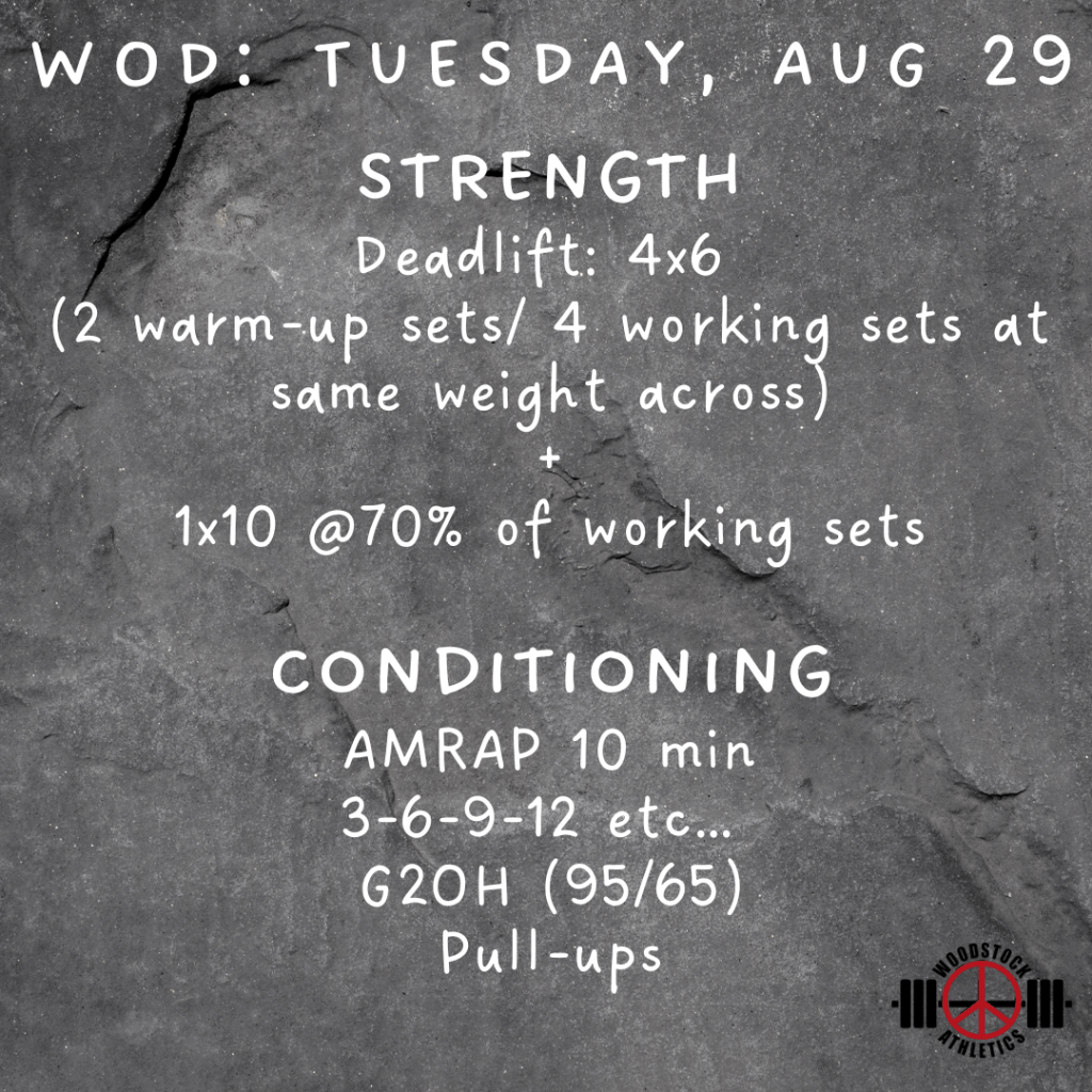 The Powerlifting program is not percentage-based, but we will be doing the same sets and reps for the first 4 weeks, and you’ll be expected to add weight each week. This does not mean you should start with something incredibly easy, but you should not plan to hit a 5RM on week 1. Again, ask your coach if you need guidance.