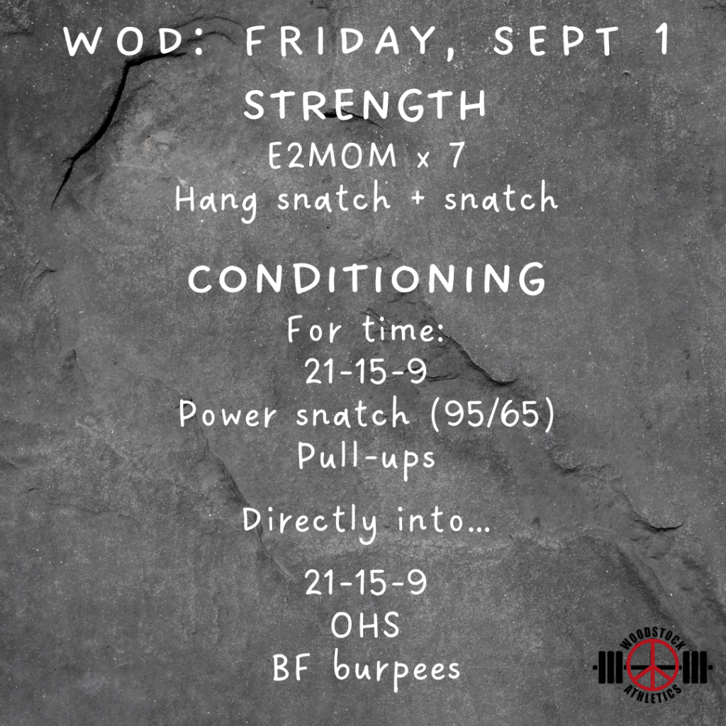 WOD: Friday, September 1 Posted bySteph VermeychukSeptember 1, 2023August 27, 2023Posted inWorkout of the Day Share this: Click to share on X (Opens in new window) X Click to share on Facebook (Opens in new window) Facebook Like Loading... Related