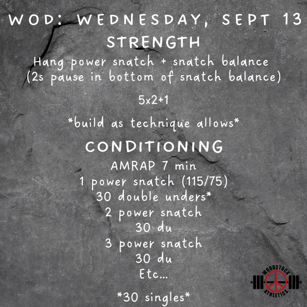 WOD: Wednesday, September 13 Posted bySteph VermeychukSeptember 13, 2023September 10, 2023Posted inWorkout of the Day Share this: Click to share on X (Opens in new window) X Click to share on Facebook (Opens in new window) Facebook Like Loading... Related