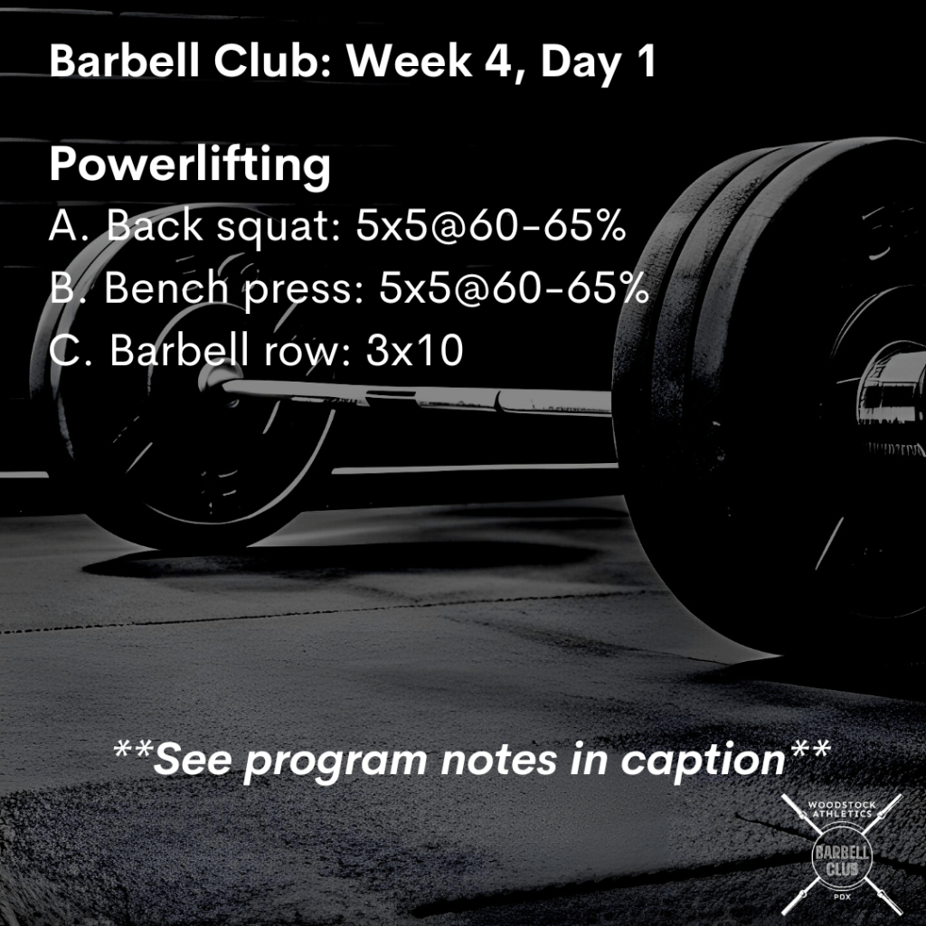 This week is deload week, and you will have the opportunity to test your 1RM’s on Saturday.