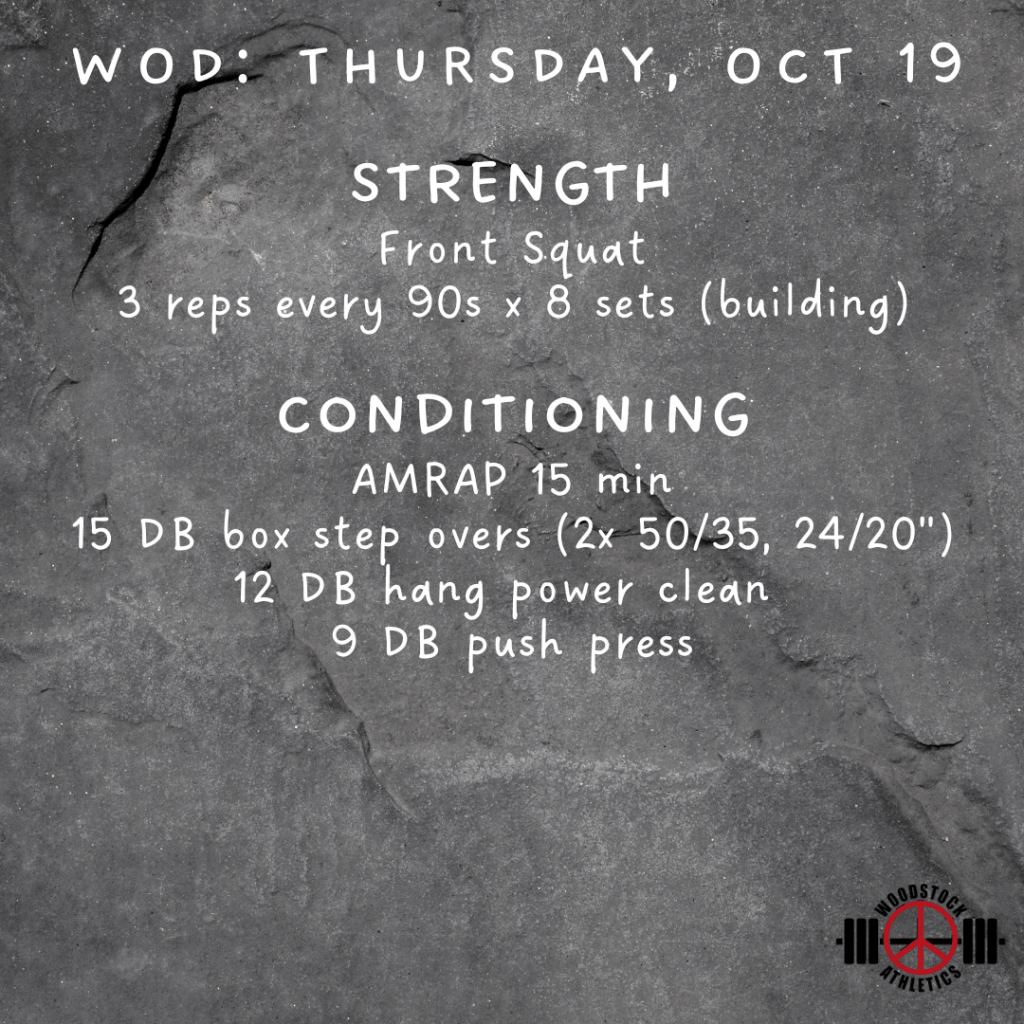 WOD & Barbell Club: Thursday, October 19 Posted bySteph VermeychukOctober 19, 2023October 15, 2023Posted inWorkout of the Day Share this: Click to share on X (Opens in new window) X Click to share on Facebook (Opens in new window) Facebook Like Loading... Related