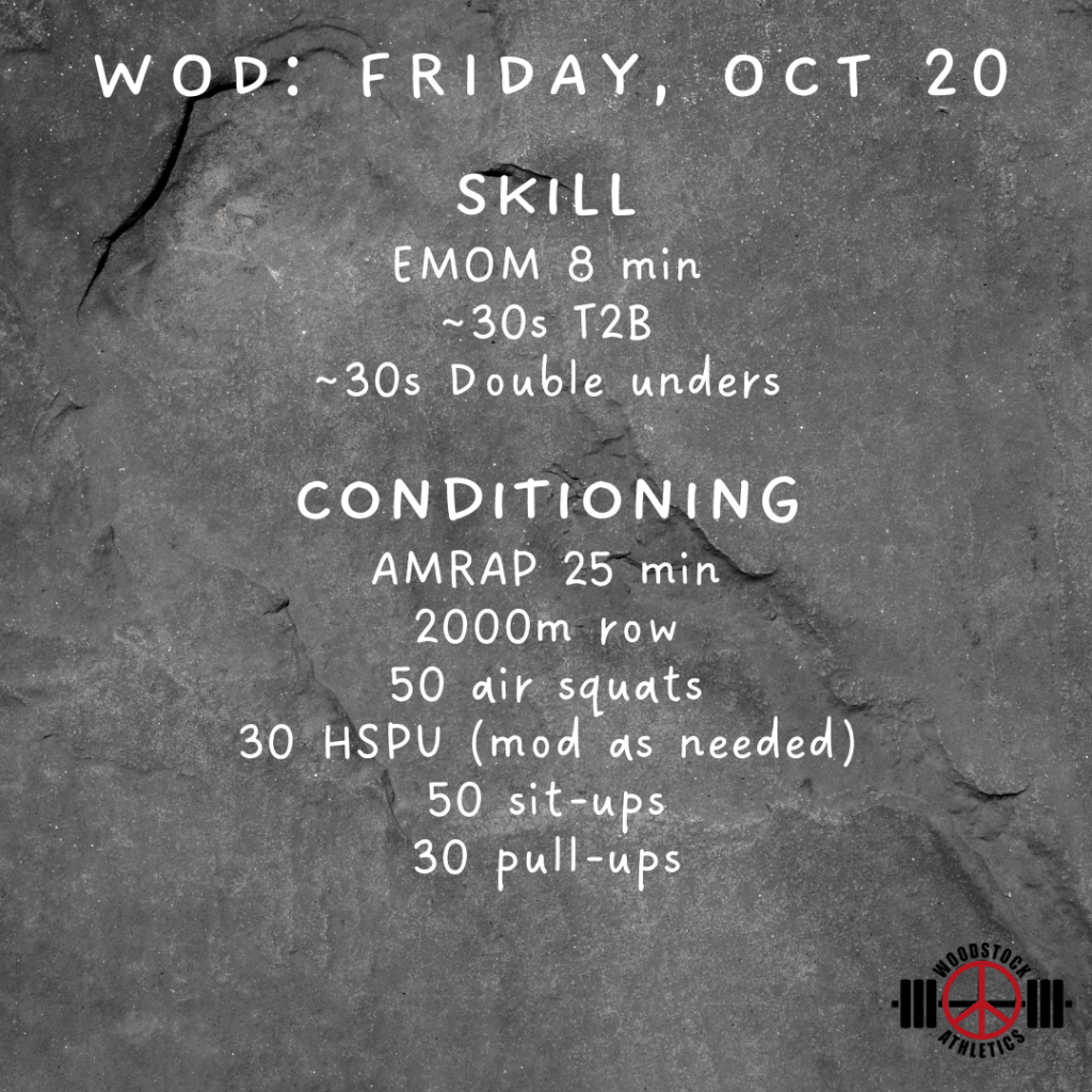 WOD: Friday, October 20 Posted bySteph VermeychukOctober 20, 2023October 15, 2023Posted inWorkout of the Day Share this: Click to share on X (Opens in new window) X Click to share on Facebook (Opens in new window) Facebook Like Loading... Related