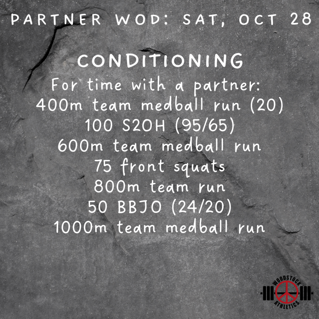 Partner WOD & Barbell Club: Saturday, October 28 Posted bySteph VermeychukOctober 28, 2023October 22, 2023Posted inWorkout of the Day Share this: Click to share on X (Opens in new window) X Click to share on Facebook (Opens in new window) Facebook Like Loading... Related