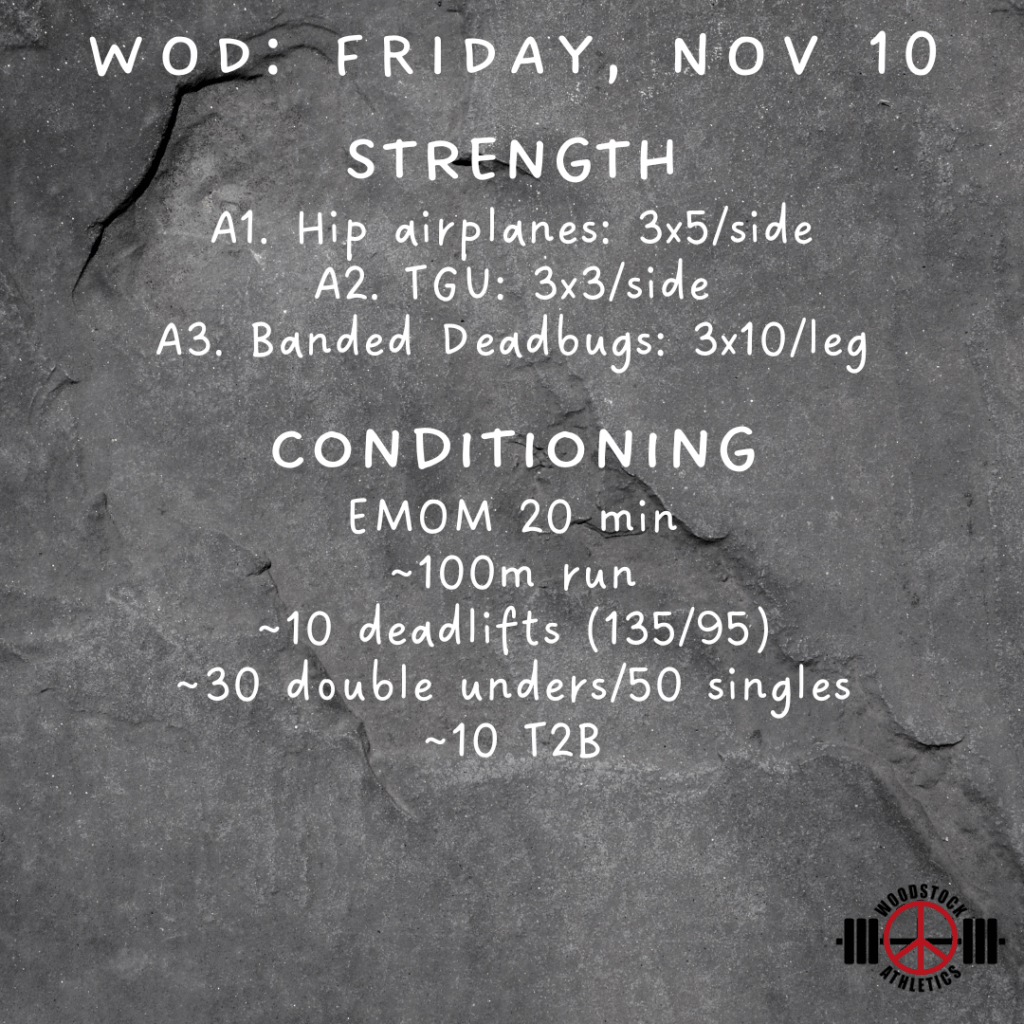 WOD: Friday, November 10 Posted bySteph VermeychukNovember 10, 2023November 6, 2023Posted inWorkout of the Day Share this: Click to share on X (Opens in new window) X Click to share on Facebook (Opens in new window) Facebook Like Loading... Related