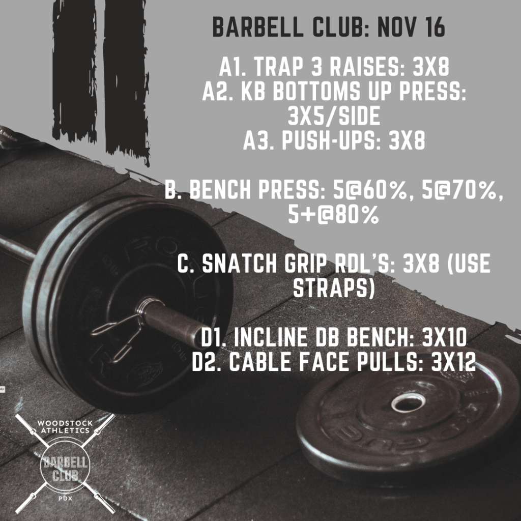 WOD & Barbell Club: Thursday, November 16 Posted bySteph VermeychukNovember 16, 2023November 12, 2023Posted inWorkout of the Day Share this: Click to share on X (Opens in new window) X Click to share on Facebook (Opens in new window) Facebook Like Loading... Related