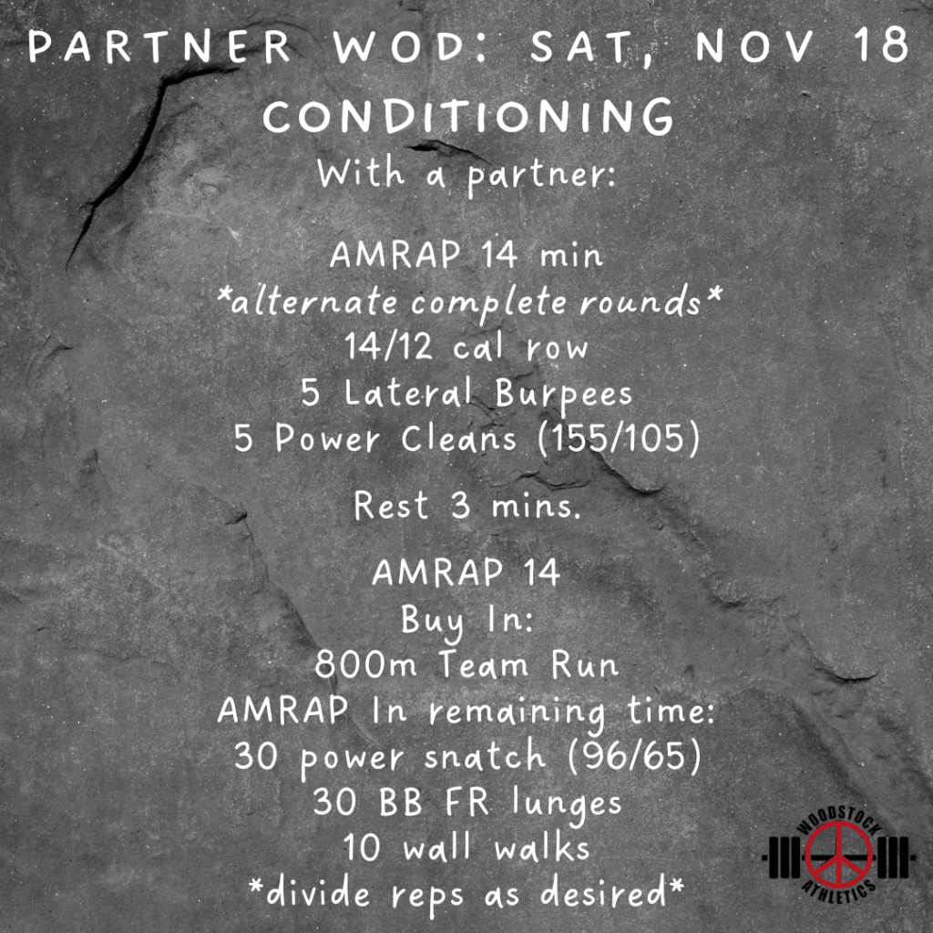 Partner WOD & Barbell Club: Saturday, November 18 Posted bySteph VermeychukNovember 18, 2023November 12, 2023Posted inWorkout of the Day Share this: Click to share on X (Opens in new window) X Click to share on Facebook (Opens in new window) Facebook Like Loading... Related
