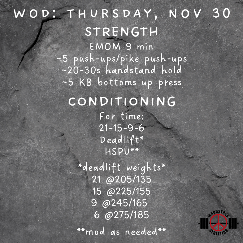 WOD & Barbell Club: Thursday, November 30 Posted bySteph VermeychukNovember 30, 2023November 25, 2023Posted inWorkout of the Day Share this: Click to share on X (Opens in new window) X Click to share on Facebook (Opens in new window) Facebook Like Loading... Related
