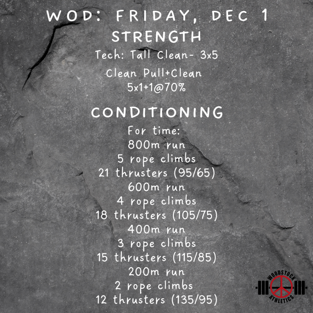 WOD: Friday, December 1 Posted bySteph VermeychukDecember 1, 2023November 25, 2023Posted inWorkout of the Day Share this: Click to share on X (Opens in new window) X Click to share on Facebook (Opens in new window) Facebook Like Loading... Related