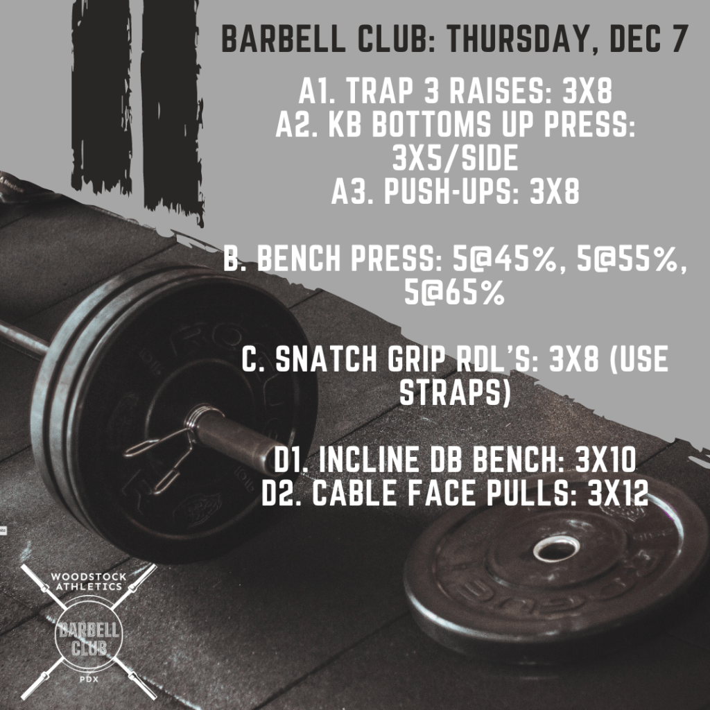 WOD & Barbell Club: Thursday, December 7 Posted bySteph VermeychukDecember 7, 2023Posted inUncategorized Share this: Click to share on X (Opens in new window) X Click to share on Facebook (Opens in new window) Facebook Like Loading... Related