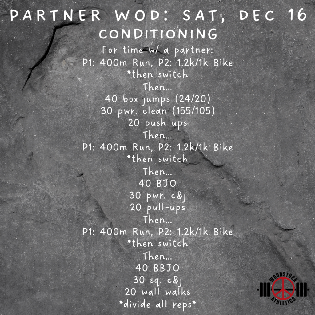 Partner WOD: Saturday, Dec 16 Posted bySteph VermeychukDecember 16, 2023December 10, 2023Posted inWorkout of the Day Share this: Click to share on X (Opens in new window) X Click to share on Facebook (Opens in new window) Facebook Like Loading... Related