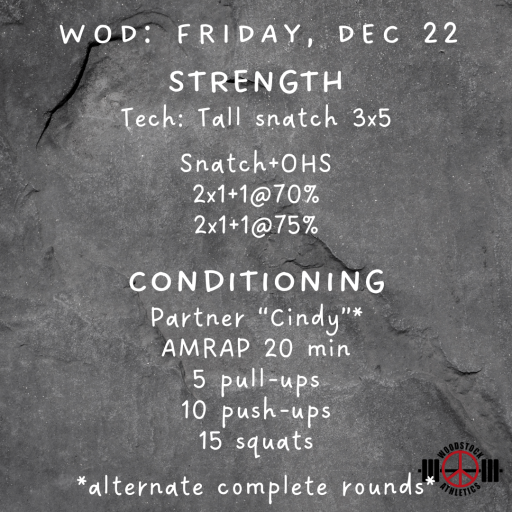 WOD: Friday, December 22 Posted bySteph VermeychukDecember 22, 2023December 17, 2023Posted inWorkout of the Day Share this: Click to share on X (Opens in new window) X Click to share on Facebook (Opens in new window) Facebook Like Loading... Related
