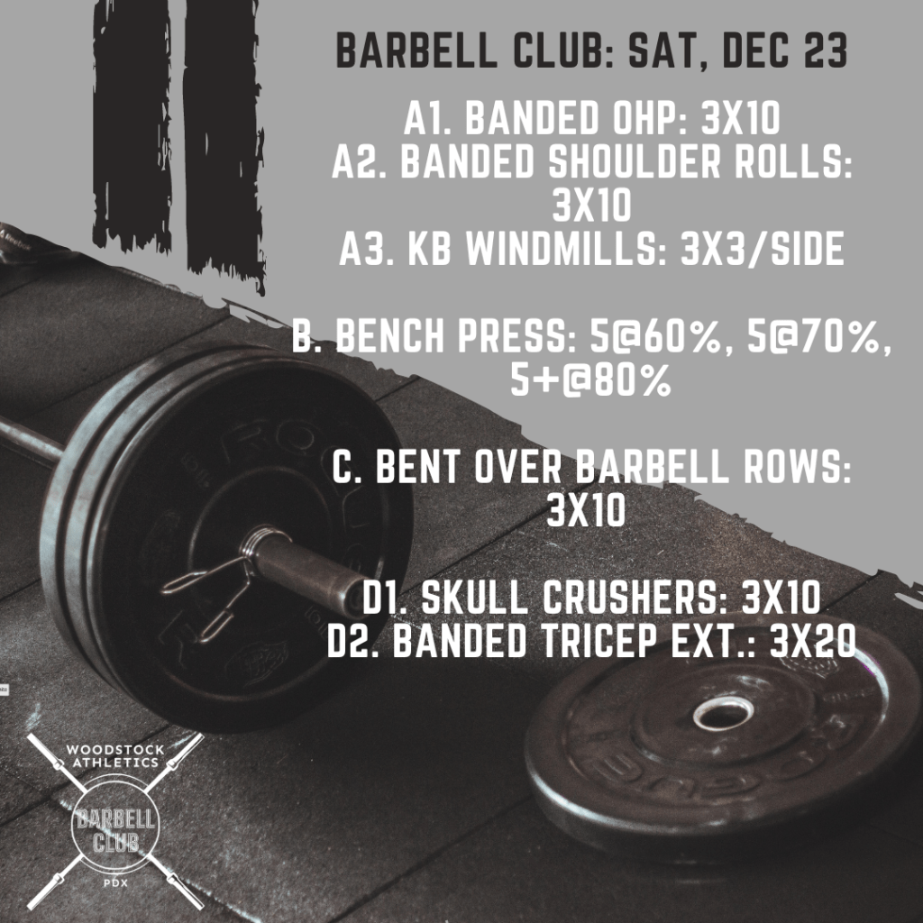 WOD & Barbell Club: Saturday, Dec 23 Posted bySteph VermeychukDecember 23, 2023December 17, 2023Posted inWorkout of the Day Share this: Click to share on X (Opens in new window) X Click to share on Facebook (Opens in new window) Facebook Like Loading... Related
