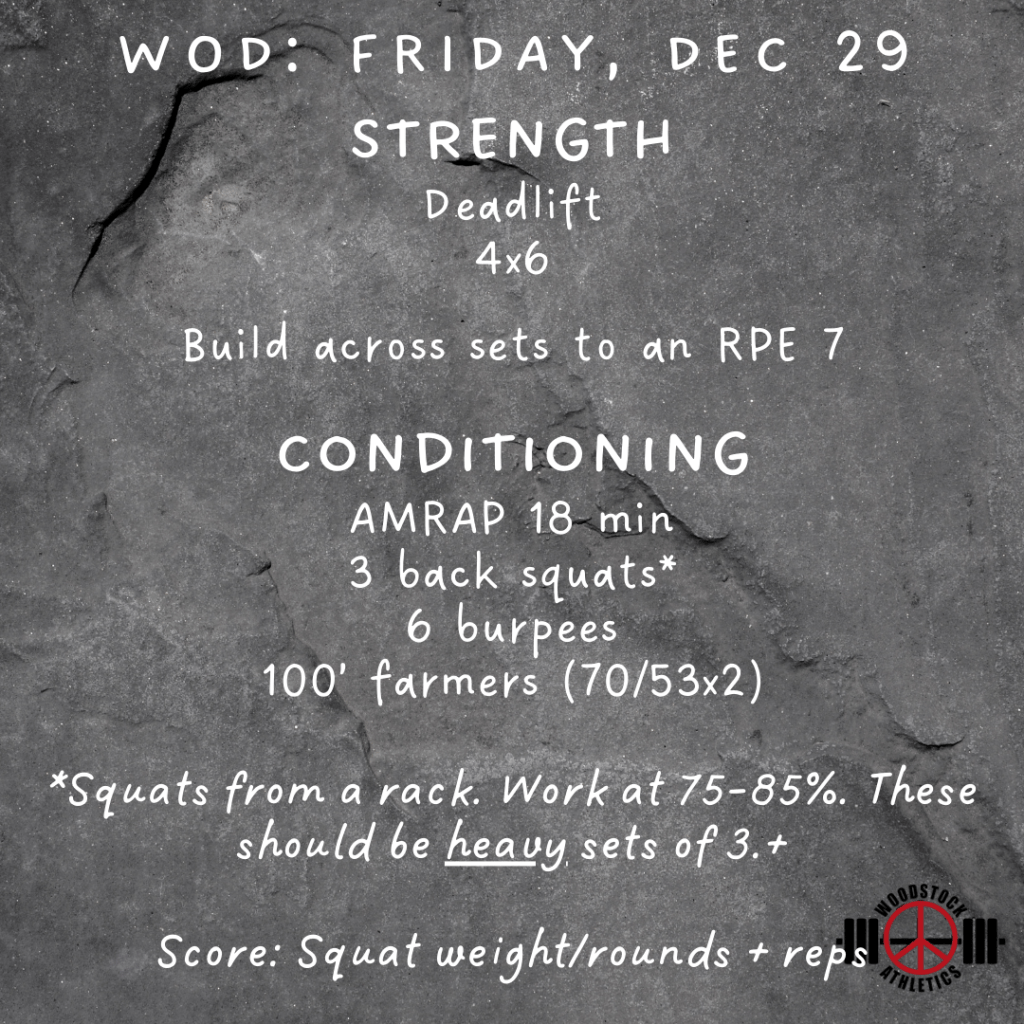 WOD: Friday, December 29 Posted bySteph VermeychukDecember 29, 2023December 24, 2023Posted inWorkout of the Day Share this: Click to share on X (Opens in new window) X Click to share on Facebook (Opens in new window) Facebook Like Loading... Related