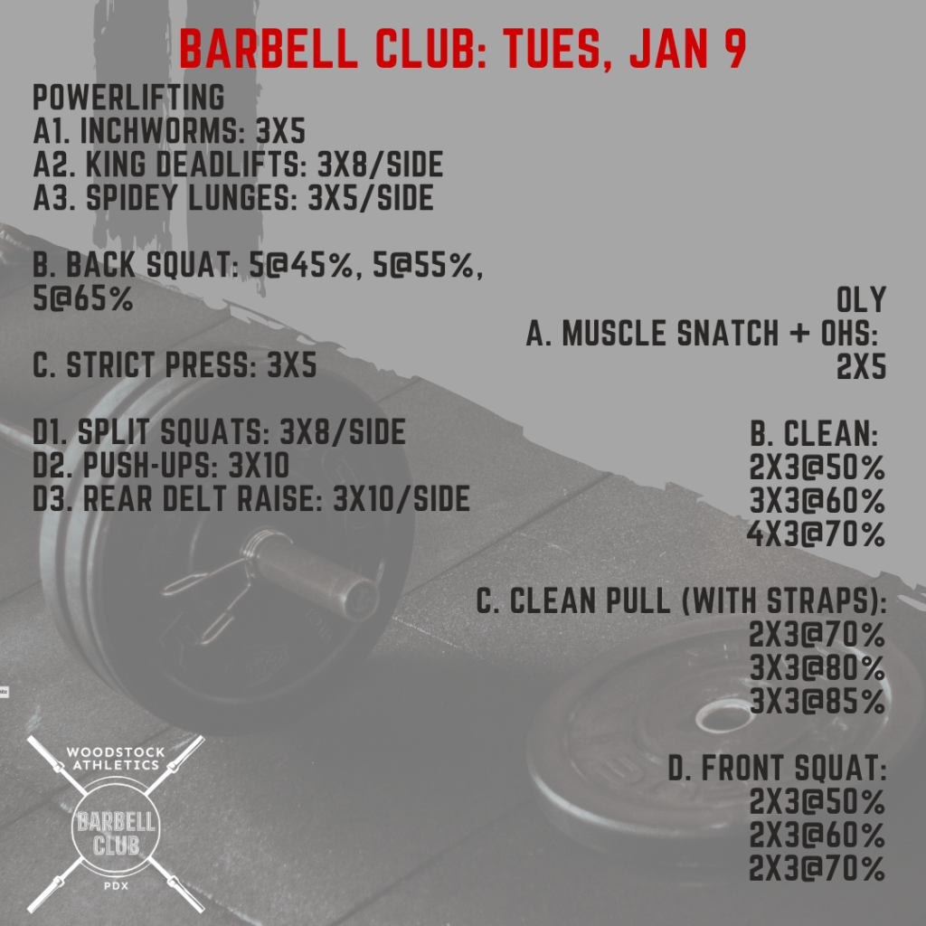 This week, there will only be two days of Barbell Club programming because of the Mock Powerlifting Meet on Saturday.