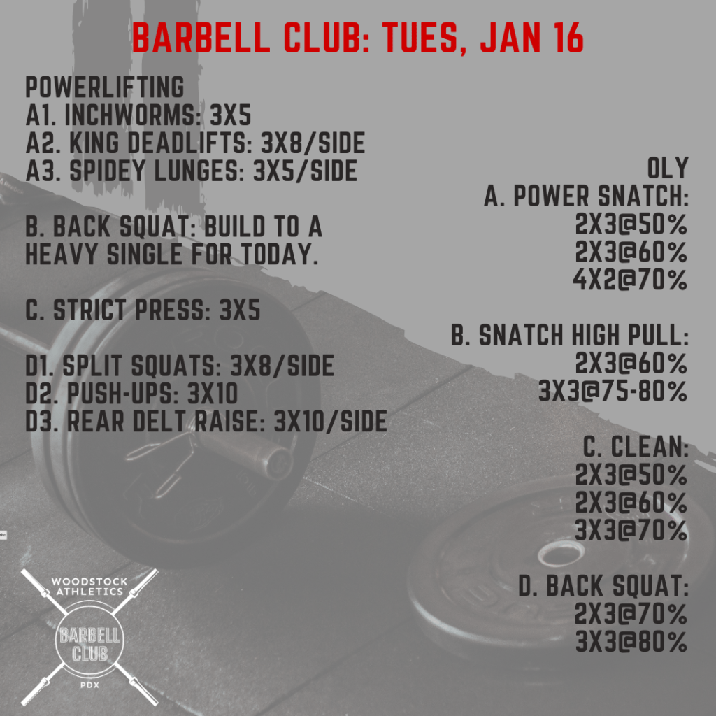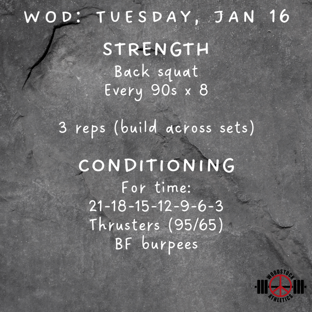WOD & Barbell Club: Tuesday, January 16 Posted bySteph VermeychukJanuary 16, 2024January 14, 2024Posted inWorkout of the Day Share this: Click to share on X (Opens in new window) X Click to share on Facebook (Opens in new window) Facebook Like Loading... Related