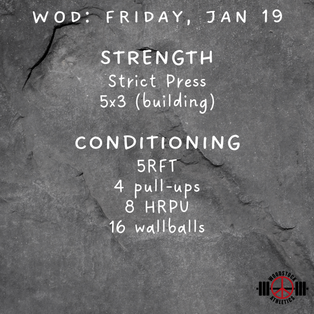 WOD: Friday, January 19 Posted bySteph VermeychukJanuary 19, 2024January 14, 2024Posted inWorkout of the Day Share this: Click to share on X (Opens in new window) X Click to share on Facebook (Opens in new window) Facebook Like Loading... Related