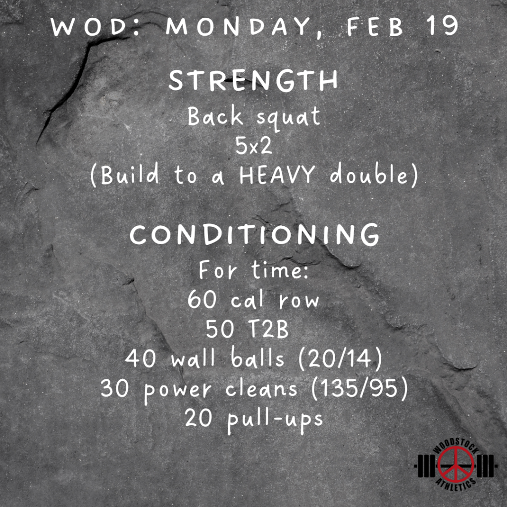 WOD: Monday, February 19 Posted bySteph VermeychukFebruary 19, 2024February 18, 2024Posted inWorkout of the Day Share this: Click to share on X (Opens in new window) X Click to share on Facebook (Opens in new window) Facebook Like Loading... Related