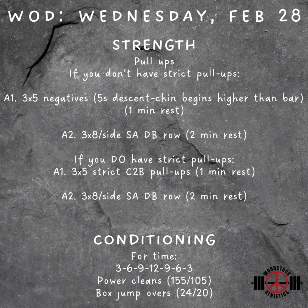 WOD: Wednesday, February 28 Posted bySteph VermeychukFebruary 28, 2024February 25, 2024Posted inWorkout of the Day Share this: Click to share on X (Opens in new window) X Click to share on Facebook (Opens in new window) Facebook Like Loading... Related