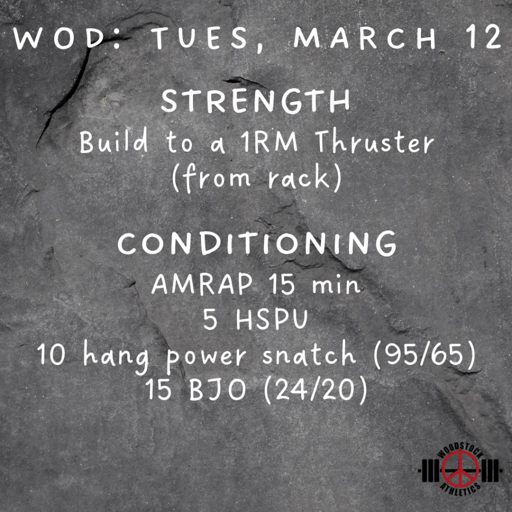 WOD & Barbell Club: Tuesday, March 12 Posted bySteph VermeychukMarch 12, 2024March 11, 2024Posted inWorkout of the Day Share this: Click to share on X (Opens in new window) X Click to share on Facebook (Opens in new window) Facebook Like Loading... Related