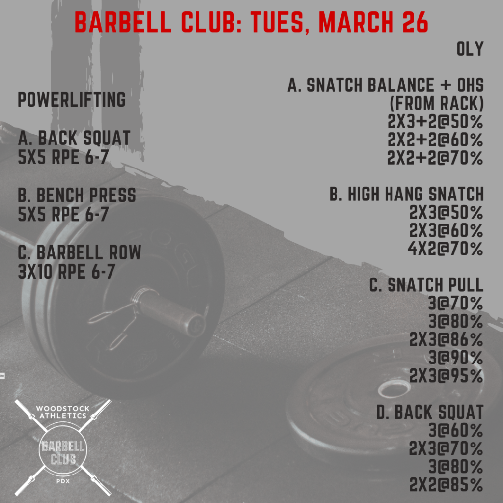 For the oly lifts, we’re going to see more complexes this block. This continues what we were working on during the last block.
