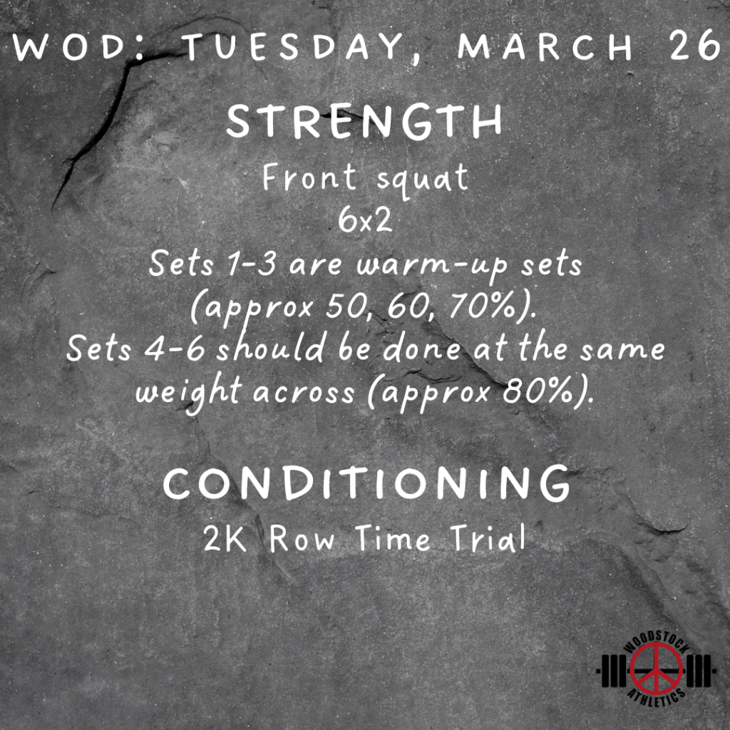 We hit a heavy Front Squat single last Monday to use for percentages throughout the next 8 weeks. If you missed this day and don’t have a current 1RM, you can use 80-85% of your max back squat. If you have no tested maxes, ask your coach for guidance.