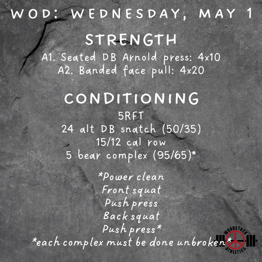 WOD: Wednesday, May 1 Posted bySteph VermeychukMay 1, 2024April 28, 2024Posted inWorkout of the Day Share this: Click to share on X (Opens in new window) X Click to share on Facebook (Opens in new window) Facebook Like Loading... Related