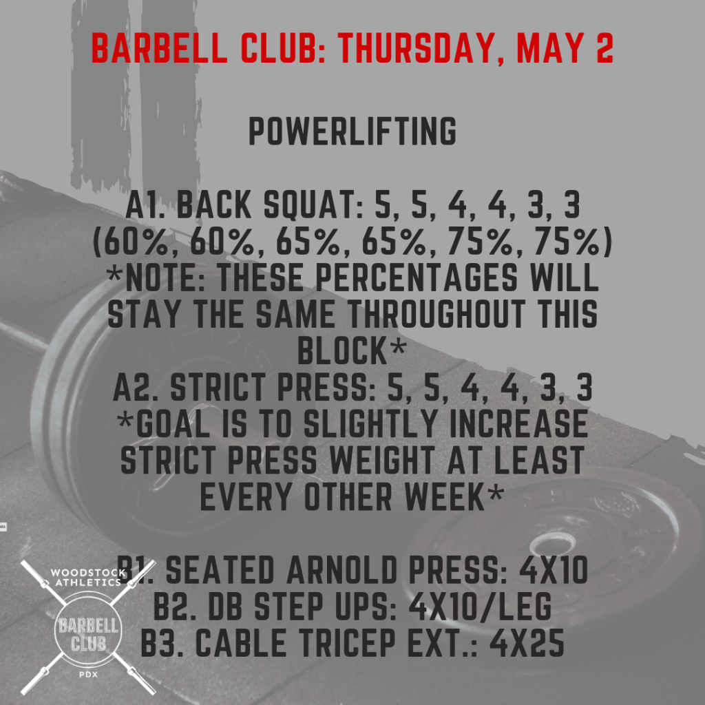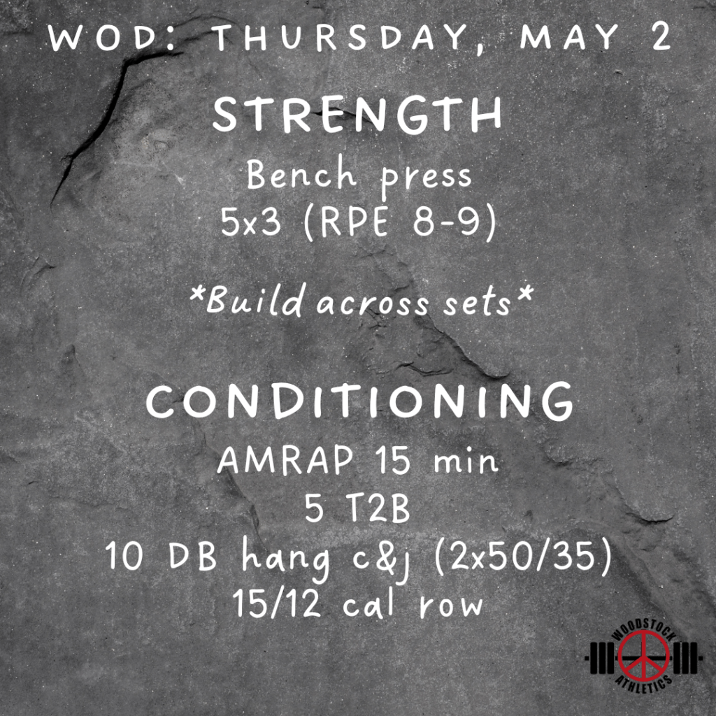 WOD & Barbell Club: Thursday, May 2 Posted bySteph VermeychukMay 2, 2024April 28, 2024Posted inUncategorized Share this: Click to share on X (Opens in new window) X Click to share on Facebook (Opens in new window) Facebook Like Loading... Related