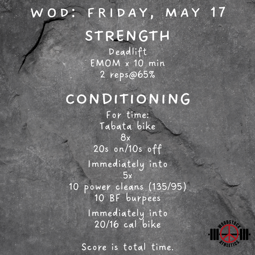 WOD: Friday, May 17 Posted bySteph VermeychukMay 17, 2024May 12, 2024Posted inWorkout of the Day Share this: Click to share on X (Opens in new window) X Click to share on Facebook (Opens in new window) Facebook Like Loading... Related