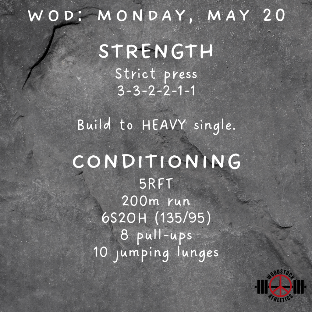 WOD: Monday, May 20 Posted bySteph VermeychukMay 20, 2024May 18, 2024Posted inWorkout of the Day Share this: Click to share on X (Opens in new window) X Click to share on Facebook (Opens in new window) Facebook Like Loading... Related