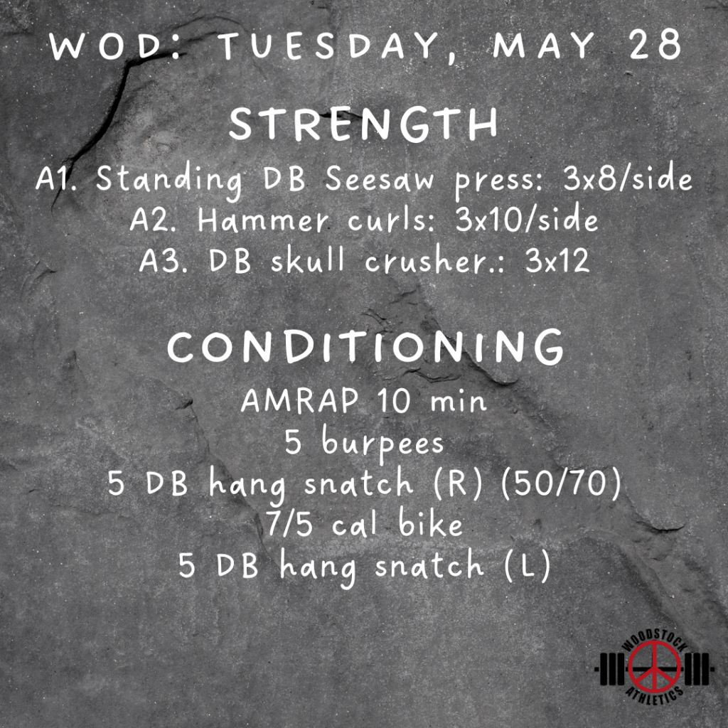 WOD & Barbell Club: Tuesday, May 28 Posted bySteph VermeychukMay 28, 2024May 18, 2024Posted inWorkout of the Day Share this: Click to share on X (Opens in new window) X Click to share on Facebook (Opens in new window) Facebook Like Loading... Related