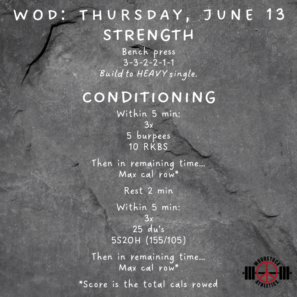 WOD & Barbell Club: Thursday, June 13 Posted bySteph VermeychukJune 13, 2024June 9, 2024Posted inWorkout of the Day Share this: Click to share on X (Opens in new window) X Click to share on Facebook (Opens in new window) Facebook Like Loading... Related