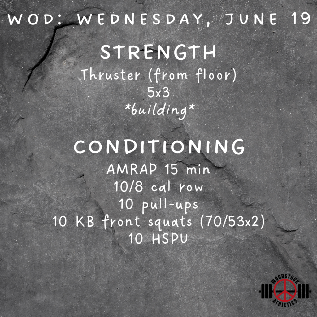 WOD: Wednesday, June 19 Posted bySteph VermeychukJune 19, 2024June 16, 2024Posted inWorkout of the Day Share this: Click to share on X (Opens in new window) X Click to share on Facebook (Opens in new window) Facebook Like Loading... Related