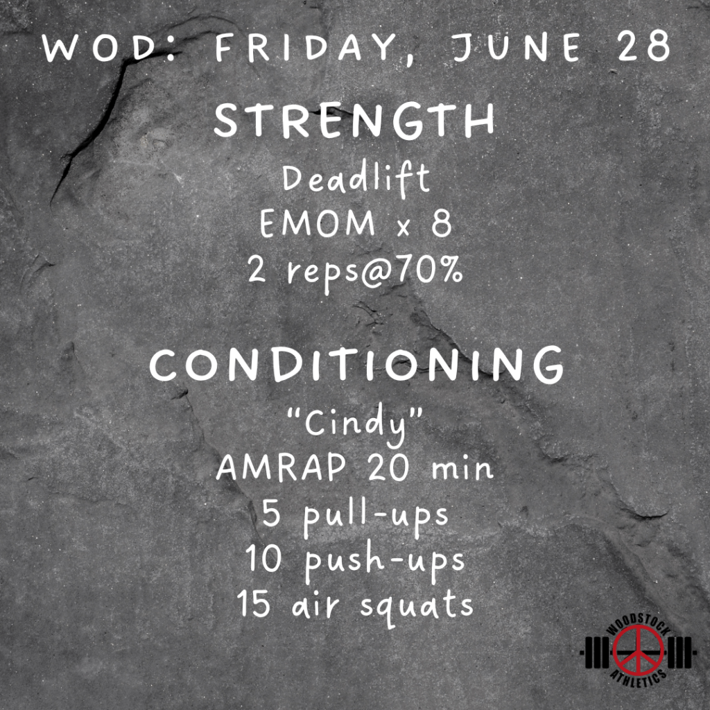 WOD: Friday, June 28 Posted bySteph VermeychukJune 28, 2024June 23, 2024Posted inWorkout of the Day Share this: Click to share on X (Opens in new window) X Click to share on Facebook (Opens in new window) Facebook Like Loading... Related