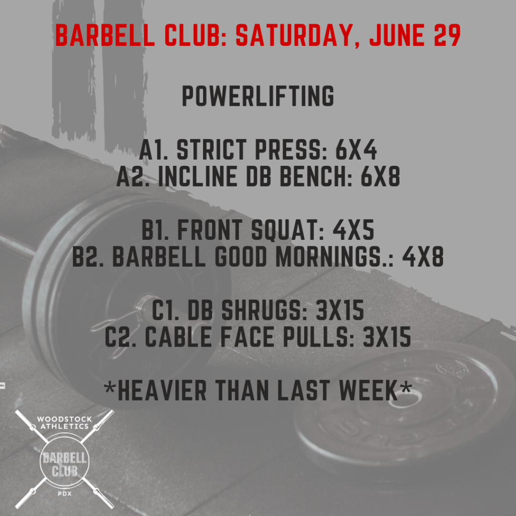 Partner WOD & Barbell Club: Saturday, June 29 Posted bySteph VermeychukJune 29, 2024June 23, 2024Posted inWorkout of the Day Share this: Click to share on X (Opens in new window) X Click to share on Facebook (Opens in new window) Facebook Like Loading... Related